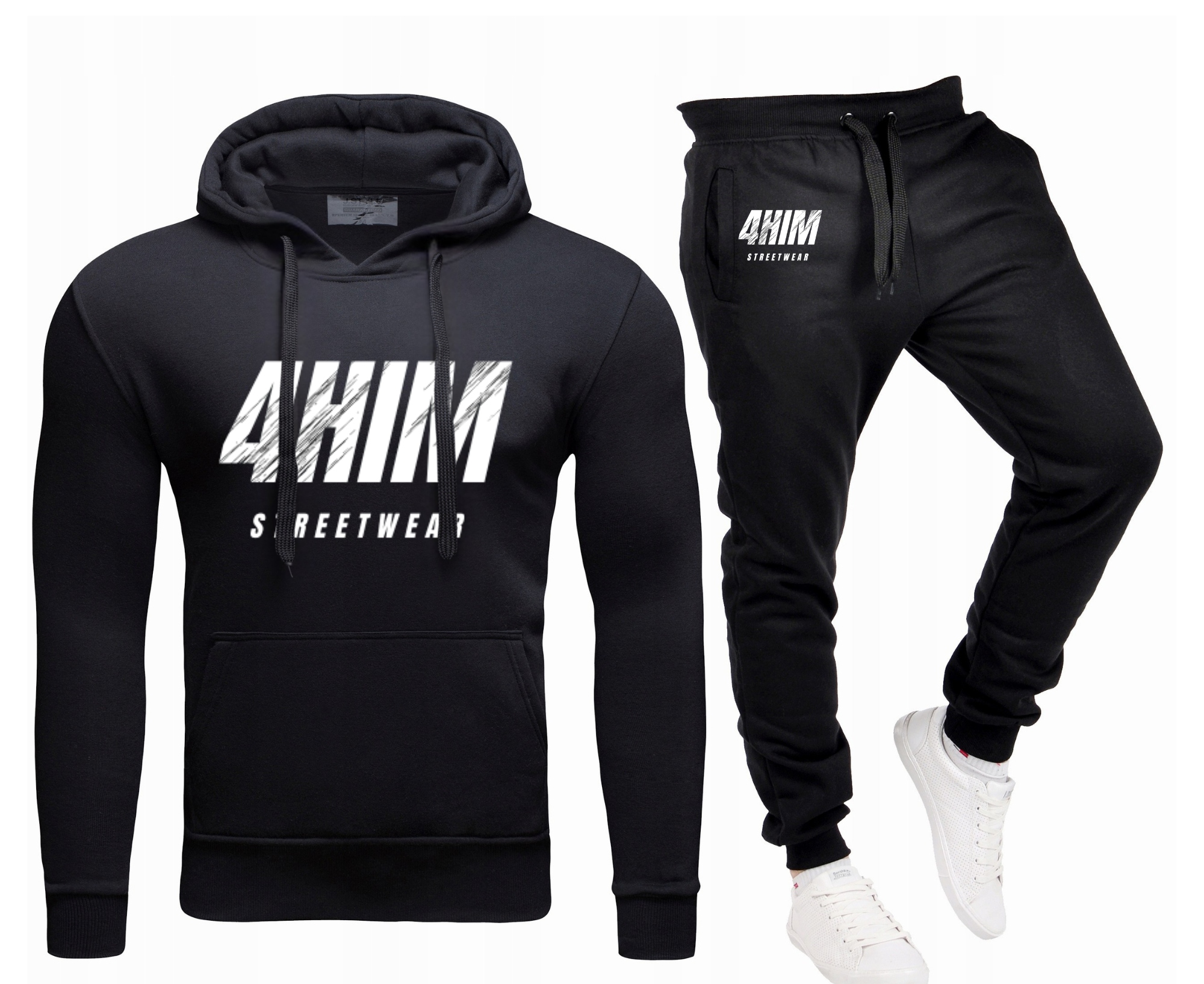 4HIM Czarny Męski Komplet Dresowy z nadrukiem Bluza z kapturem+Spodnie