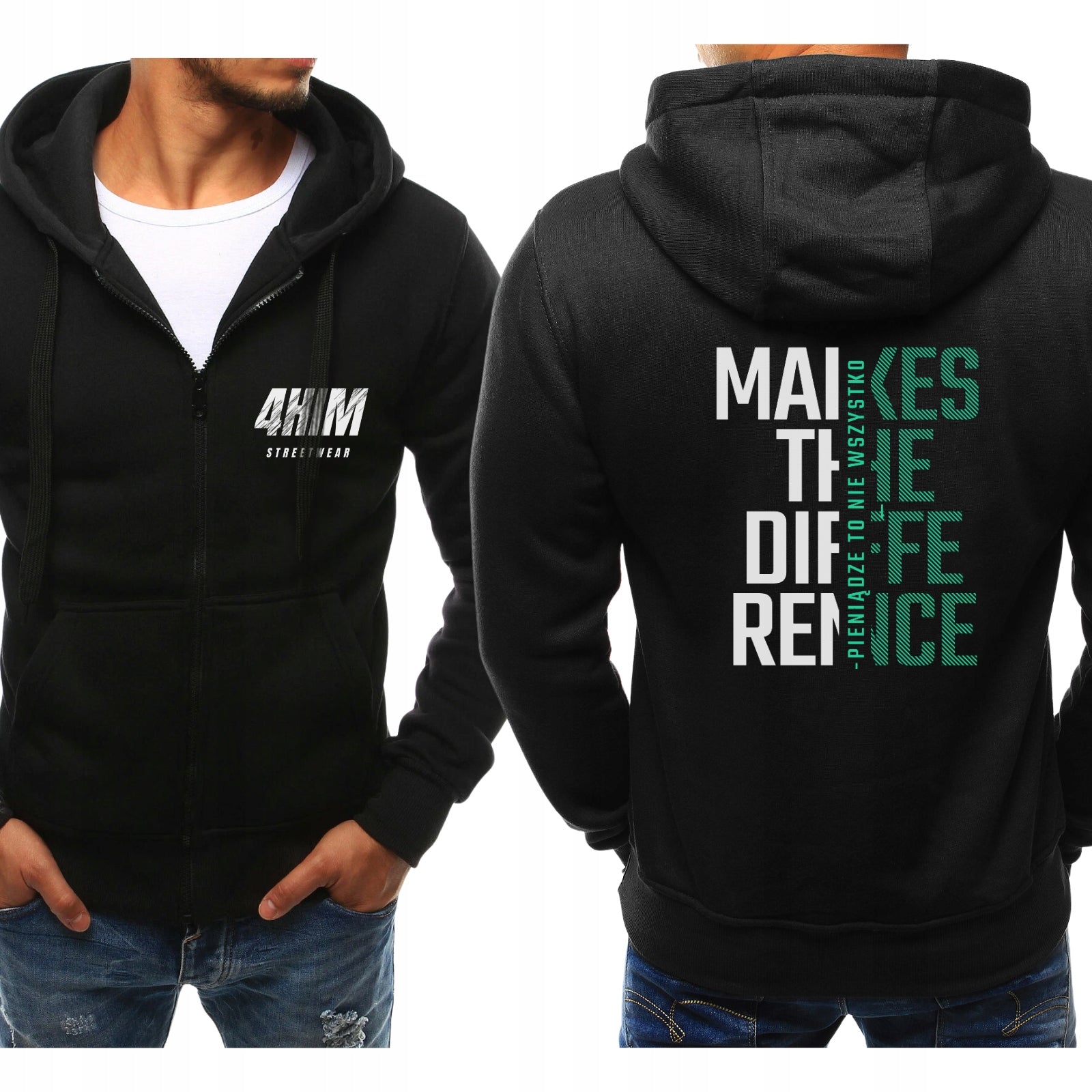 4HIM ROZPINANA PIENIĄDZ TO NIE WSZYSTKO BLUZA Z KAPTUREM NADRUK Z TYŁU