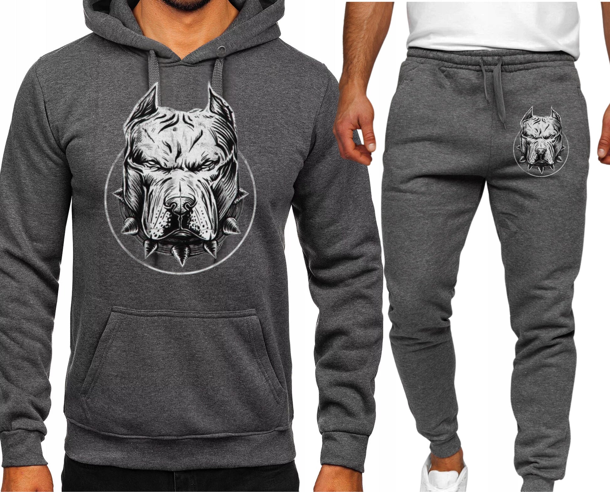 BUZIA PITBULL WHITE MESKI KOMPLET DRESOWY BLUZA KAPTUREM+SPODNIE SZARY