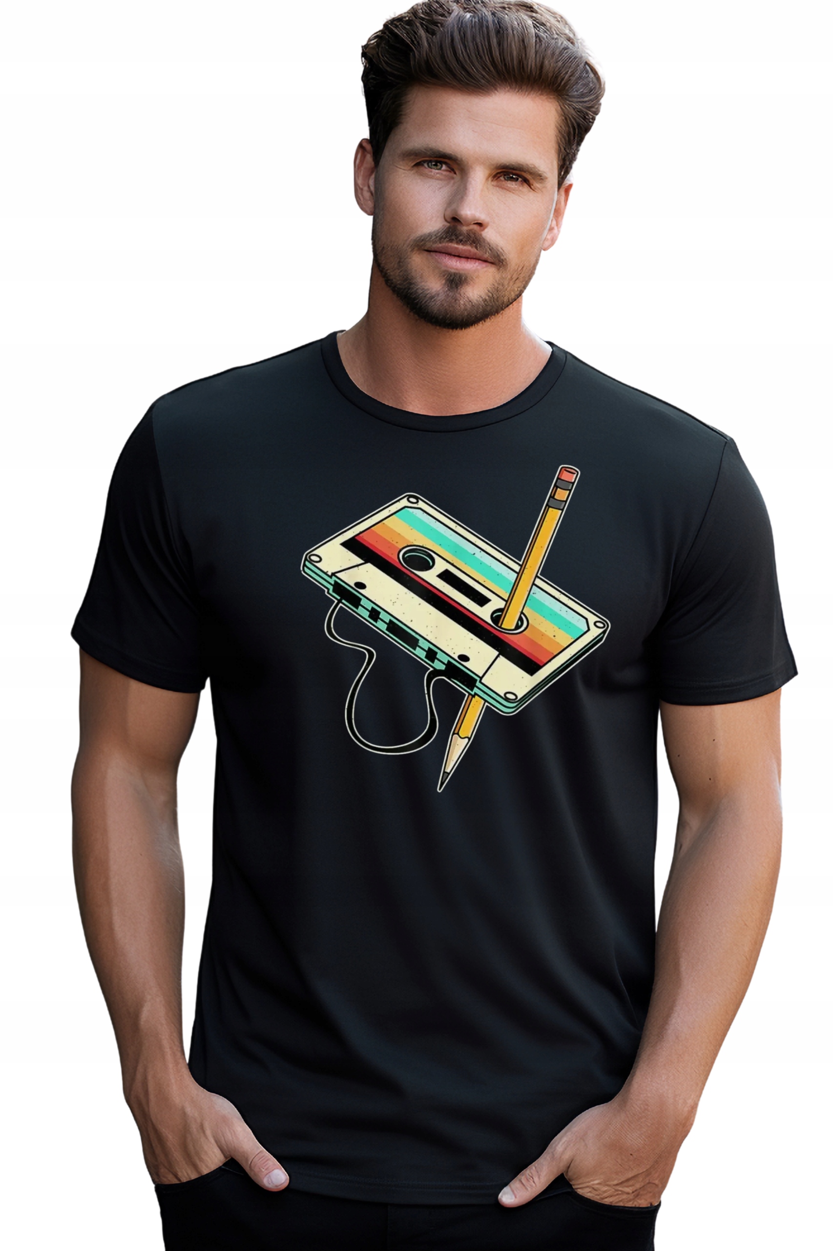 Kaseta Magnetofonowa Retro męska Koszulka T-Shirt nadrukiem Bawełniana