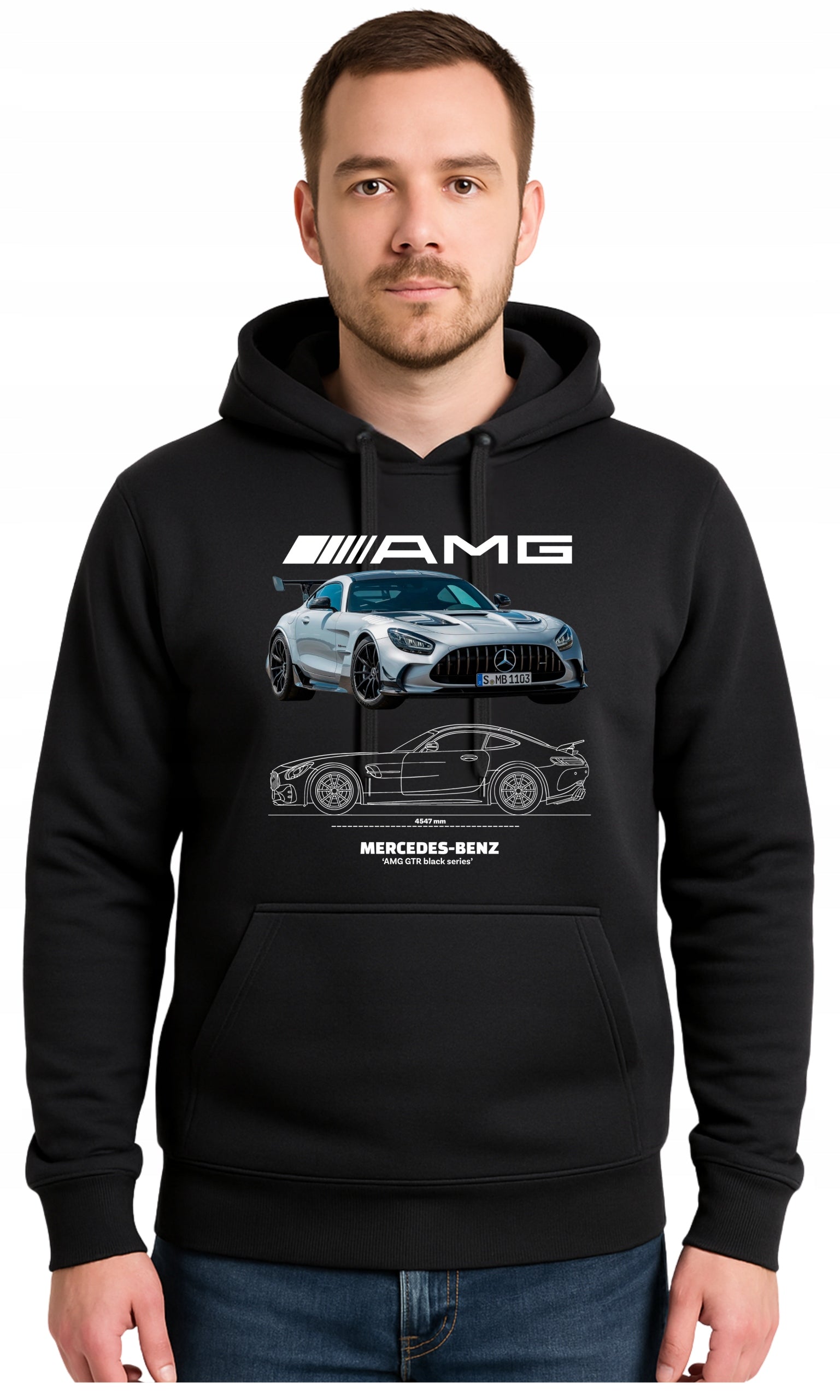 MERCEDES BENZ AMG Czarna Męska Bluza Dresowa z kapturem z Nadrukiem