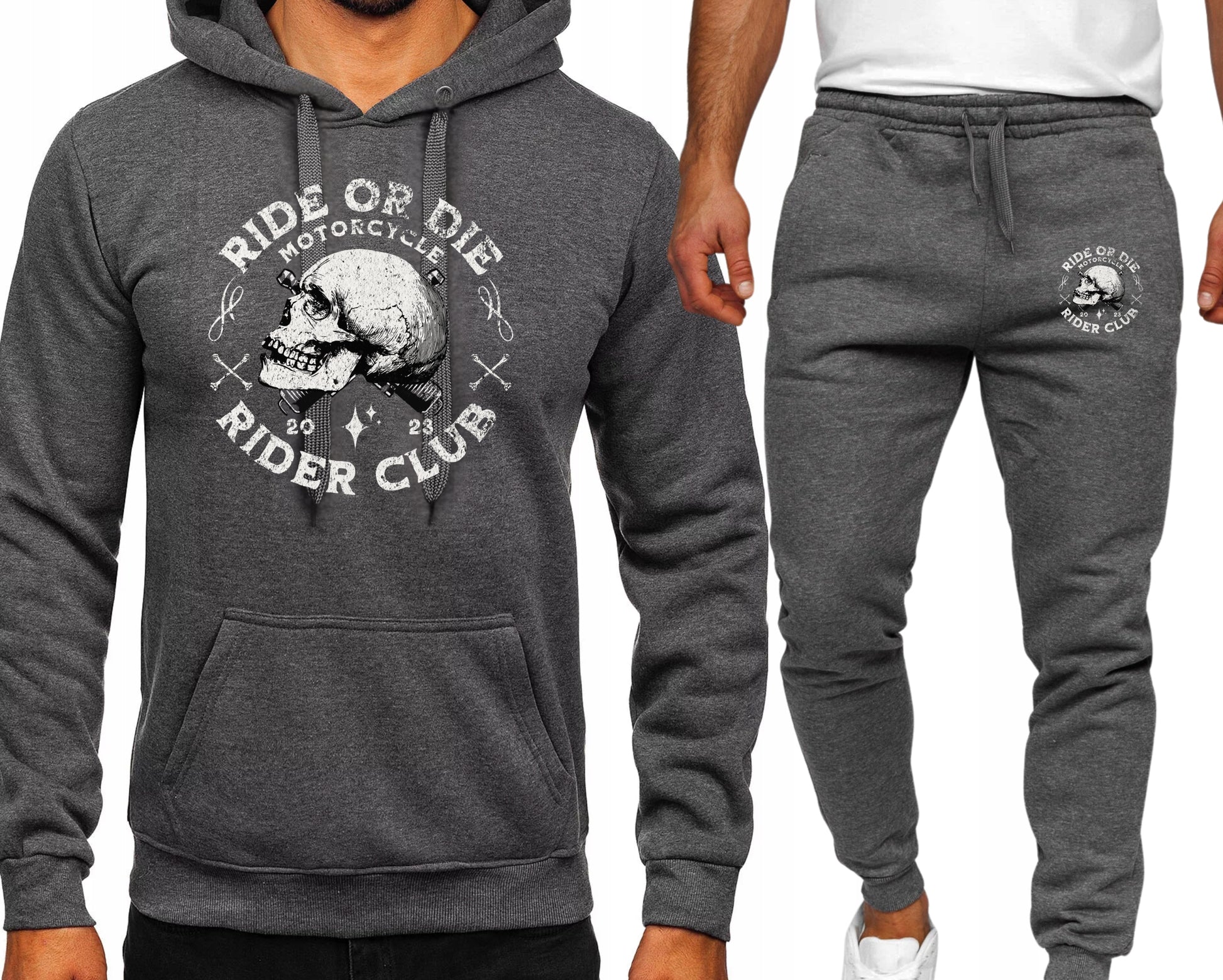 MOTOCYKLOWA RIDE MESKI KOMPLET DRESOWY BLUZA KAPTUREM+SPODNIE SZARY