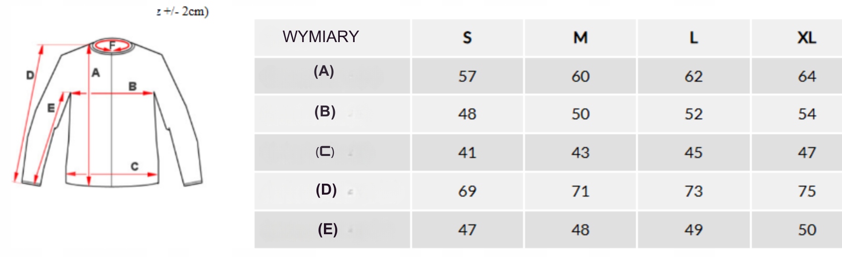 Zmierzoną bluzę, którą nosisz najchętniej, porównaj z powyższymi wymiarami.